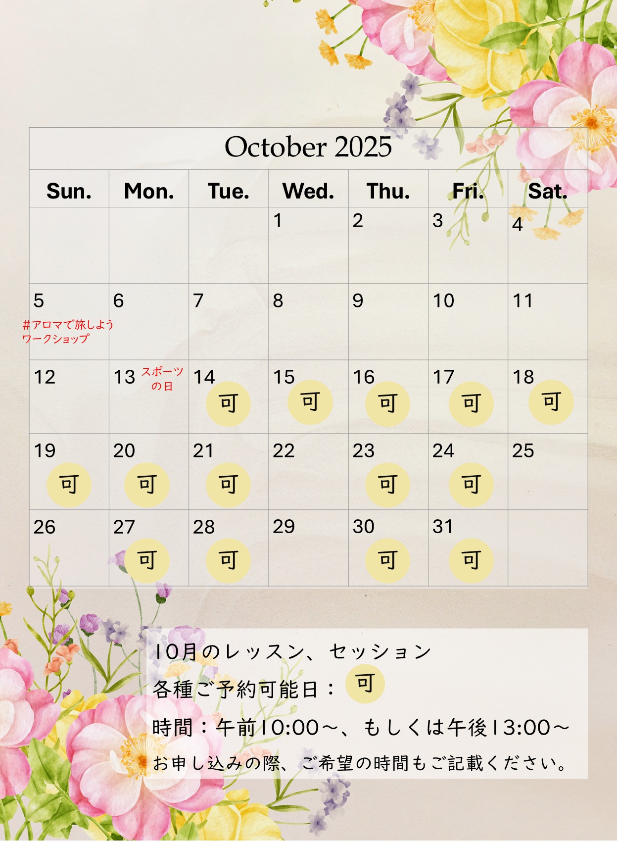 【セッション・レッスン】2025年10月のカレンダーをアップしました。 | My Treasure Chest