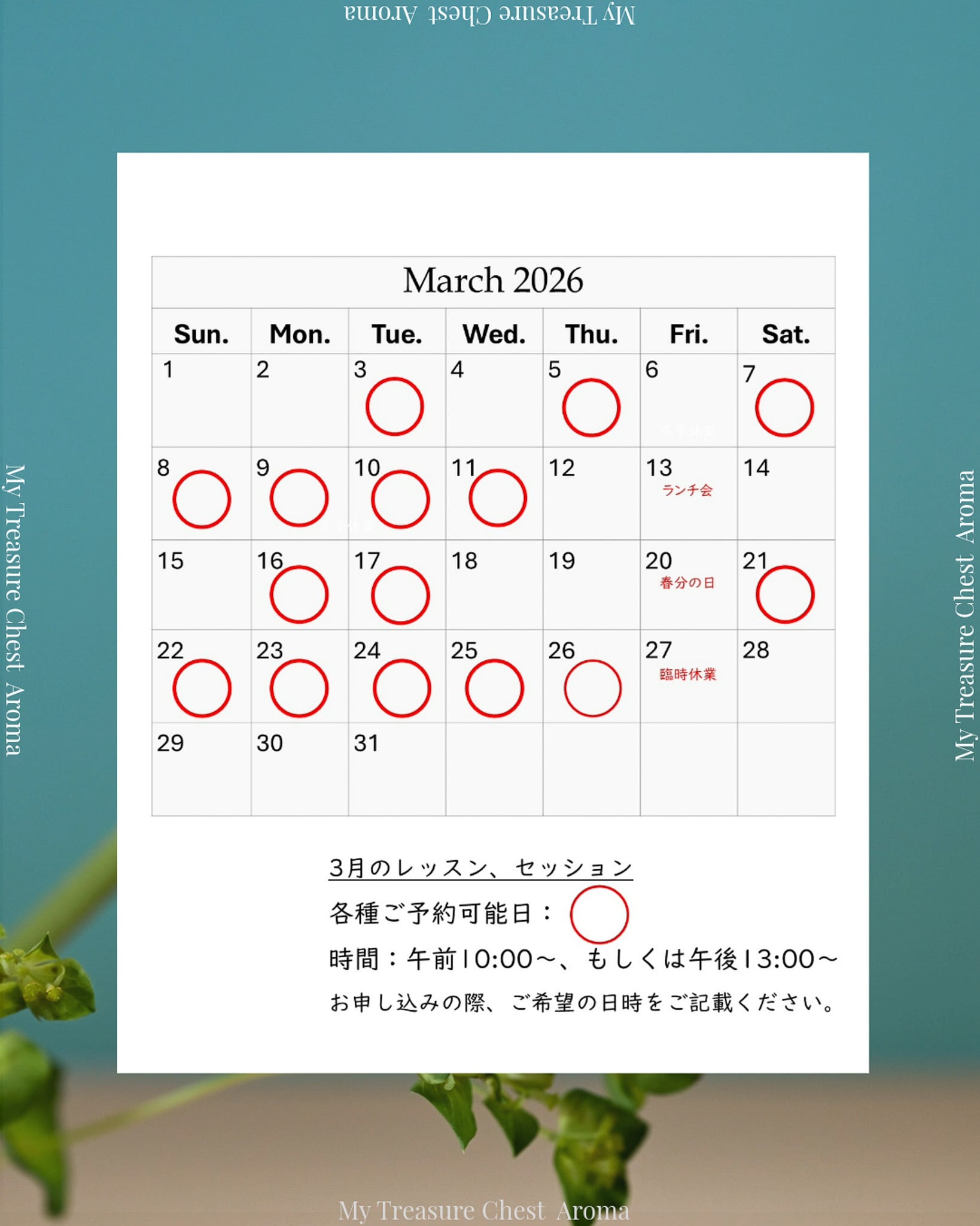 ・夏季、年末年始の長期休業時もご予約はお取りいただけますが、講座で使用する資料やzoomで使用するURLの送付は休み明けとなりますので、ご了承の上お申し込みをお願いいたします。
