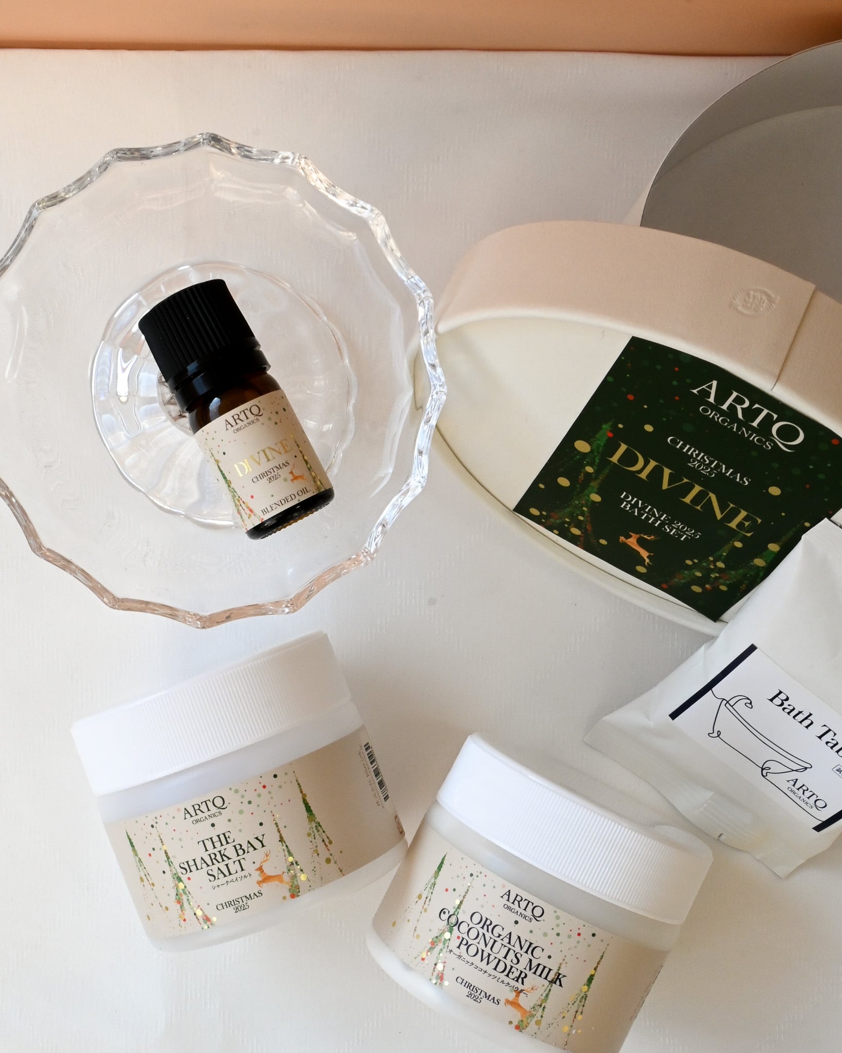 シャークベイソルトとオーガニックココナッツミルクパウダーに加え、ARTQオリジナルのジャスミンブレンドオイルがついたとてもお得なセットです。